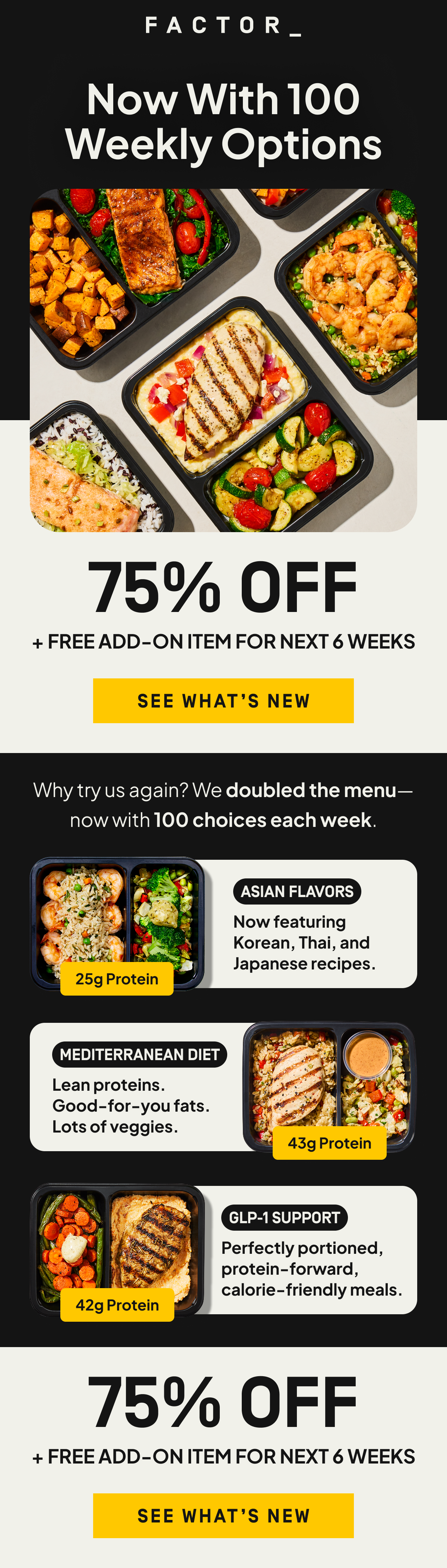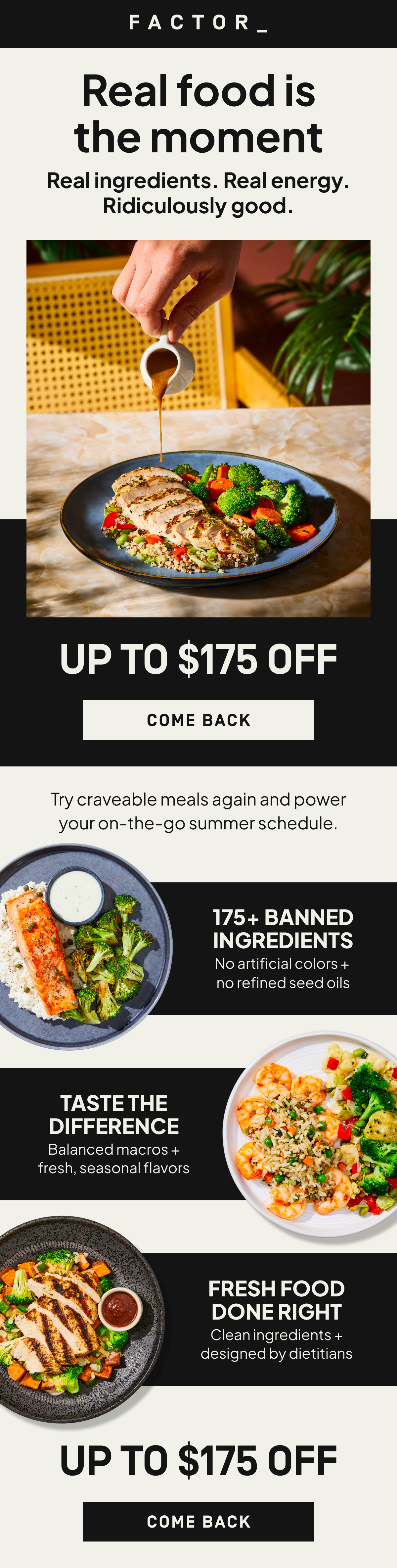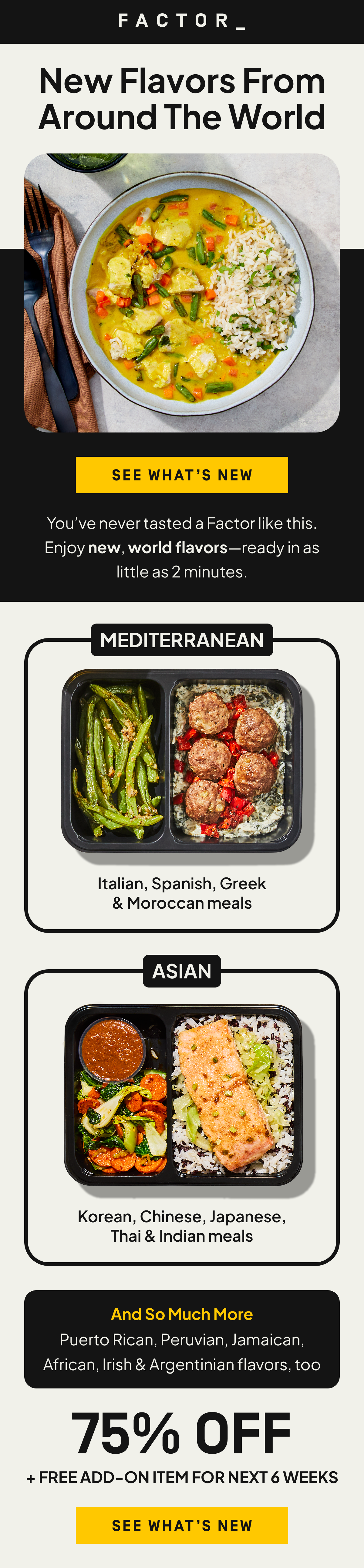 These emails reflect Factor’s premium positioning, where visual discipline is the point. I kept the aesthetic clean and intentional across every send, letting photography and typography carry the weight without overcomplicating the layout.